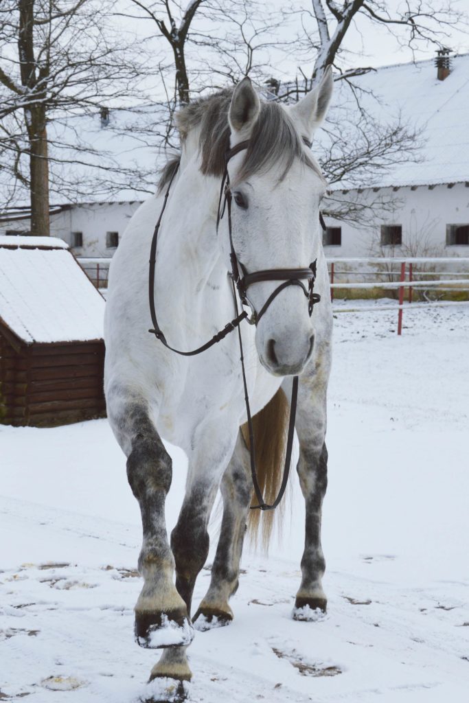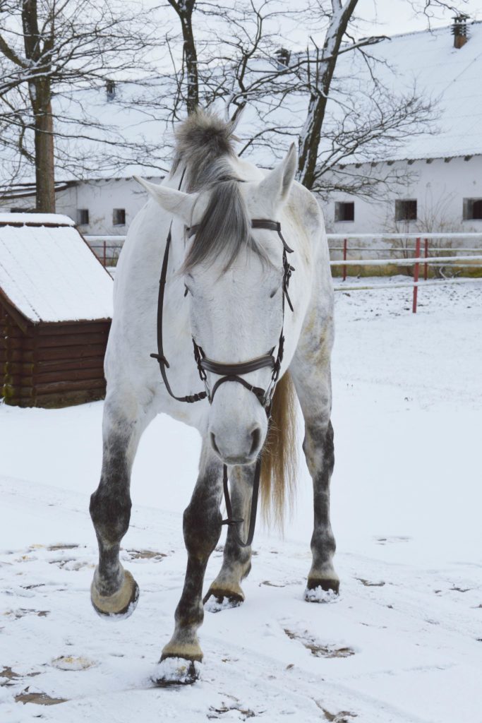 Grudzień i styczeń minęły nam w połowie na pracy ujeżdżeniowej na hali. Siwy był w całkiem niezłej formie i dobrze nam się współpracowało. Trochę żałuję, że musieliśmy to tak odłożyć na bok i liczę, że podczas przerwy dużo nie zapomni. Pracowaliśmy przede wszystkim nad utrzymaniem ustawienia we wszystkich trzech chodach, bo z tym jednak mamy największy problem. Kaszmirowy na szczęście coraz szybciej się rozluźniał na początku jazdy i nawet, jak się rozproszy, to wraca do ręki sprawniej. Oczywiście najlepiej pracowało nam się w ostatnich dniach przed zabiegiem, ale chyba zawsze tak jest. Dzięki temu udało nam się choć trochę wypracować mięśnie, które teraz znikają z dnia na dzień.