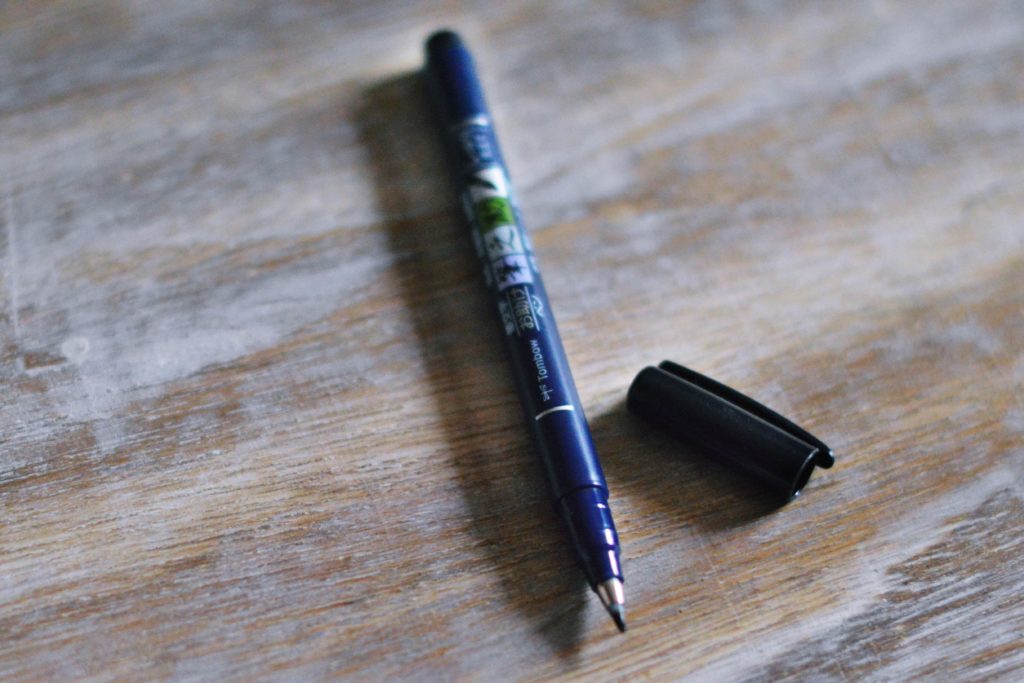 - tombow fudenosake hard – w kolorze czarnym. To mój ulubiony brush pen i od prawie roku kocham go miłością wielką! Łatwo się prowadzi i polecam go szczególnie tym, którzy zacznają swoją przygodę z kaligrafią.