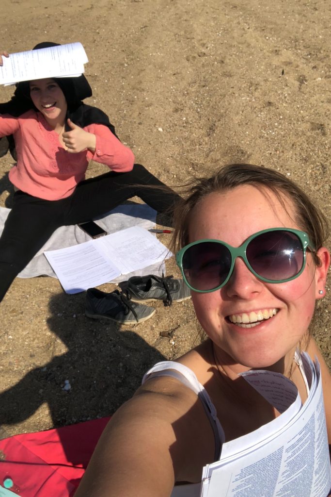 W niedzielę wybrałam się z Laurą na plażę, która utworzyła się na środku Loary. Musiałyśmy zbierać się z akademika, bo na hali sportowej obok były zawody i było zdecydowanie za głośno. W planach miałyśmy naukę, ale skończyło się raczej na plażowaniu i krótkiej lekturze notatek 😀