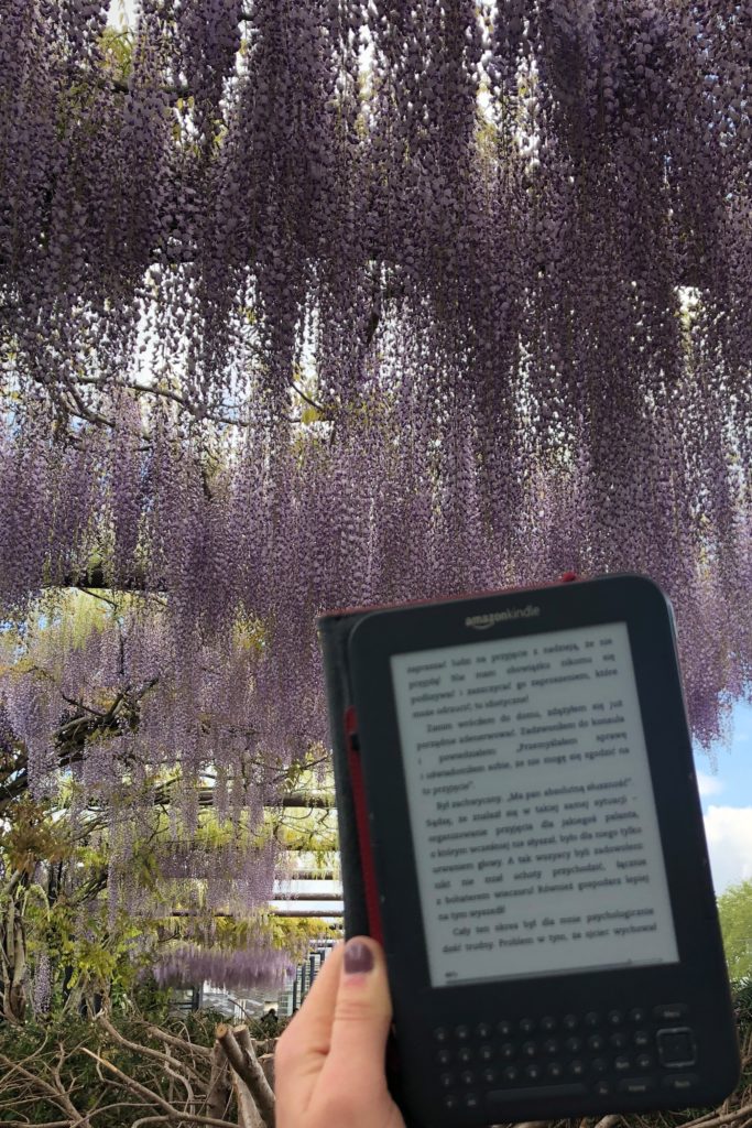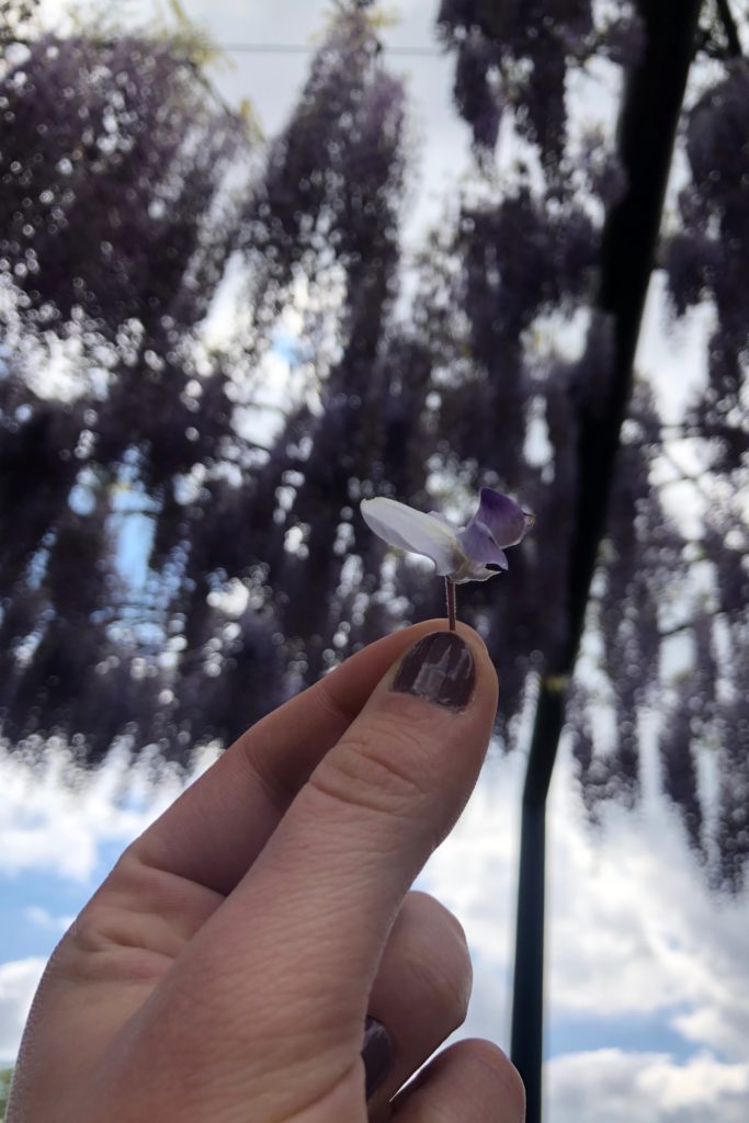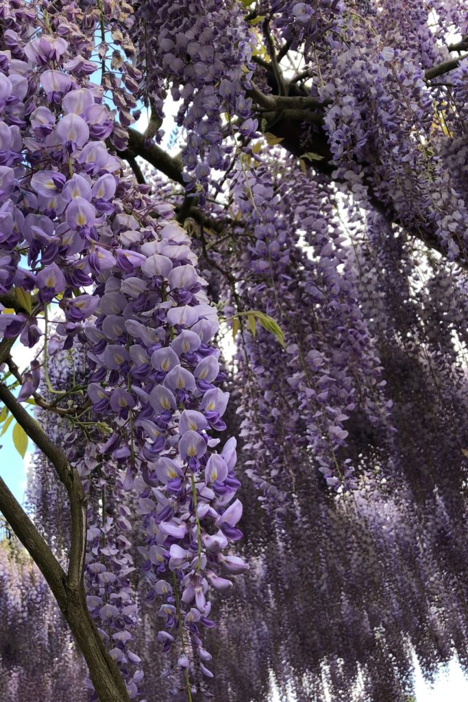 W moim ulubionym ogrodzie na dachu kina zakwitły glicynie/wisterie i tworzą teraz przepiękny fioletowy dach nad ławkami. Niestety wkrótce po tym, jak zakwitły pogoda zrobiła się bardzo kapryśna. Udało mi się zrobić pod nimi zdjęcia podczas pobytu rodziców w Orleanie, a potem jednego dnia poczytać książkę bez marznięcia i moknięcia. Mój zachwyt tym miejscem jest nieustający i bardzo żałuję, że lato sobie poszło z Orleanu.