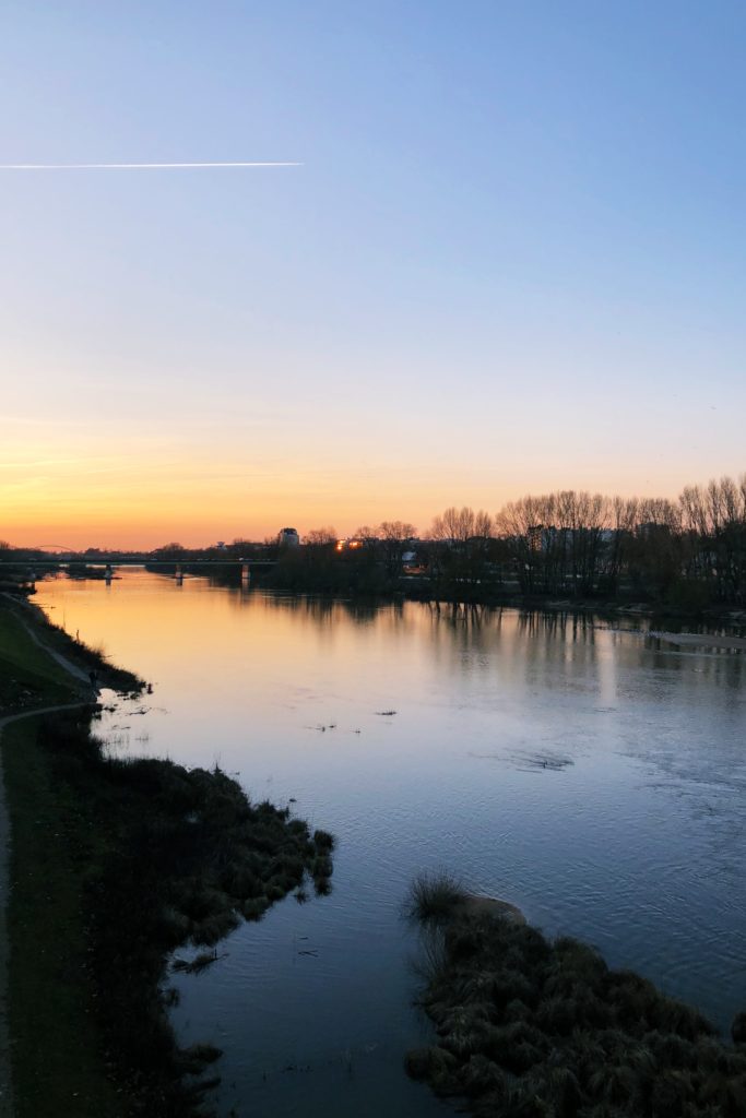 Niedziela przebiegła mi zdecydowanie spokojnie – musiałam zbierać siły na wszystkie wycieczki, które zaplanowałam w tygodniu. Jednak od zawsze jestem przyzwyczajona do spędzania czasu na świeżym powietrzu, więc siedzenie w pokoju (z żółtą ścianą!), kiedy za oknem świeci piękne słońce i jest 18ºC, zupełnie nie wchodzi w grę. Dlatego postanowiłam, tak, jak cała populacja Orleanu ;), wybrać się na spacer bulwarami nad Loarą, poczytać książkę, a następnie obejrzeć zachód słońca.