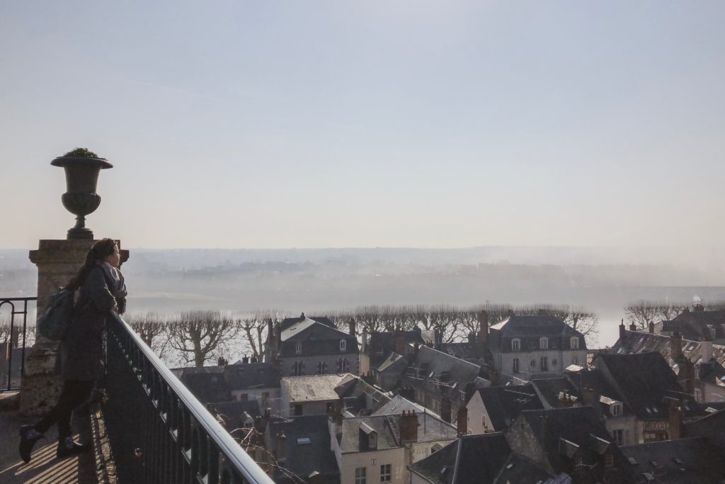 W środę wybrałam się do Blois, kolejnego miasta nad Loarą. Na miejsce dotarłam chwilę po 9 i przywitała mnie mgła, a wraz z nią wilgoć i zimno. Dość szybko zmarzłam i chciałam znaleźć miejsce do ogrzania przy kawie. Niestety we Francji to wcale nie takie proste – większość miejsc jest otwierana po 10, a kawiarnia, którą chciałam odwiedzić została zlikwidowana 😉 Ostatecznie posiedziałam z książką w kawiarnio-sklepie z czekoladą. Niezbyt się nagrzałam, ale wyszło słońce i ruszyłam na miasto. Okrężną drogą dotarłam do katedry, a następnie do ogrodów tuż obok niej. Cóż to był za widok! Słońce, dachy, ceglane kominy, a w tle Loara i końcówka mgły. Magia! Widok zapierający dech w piersiach, a obok nikogo! Żadnych turystów, żadnych wycieczek – cisza i spokój.