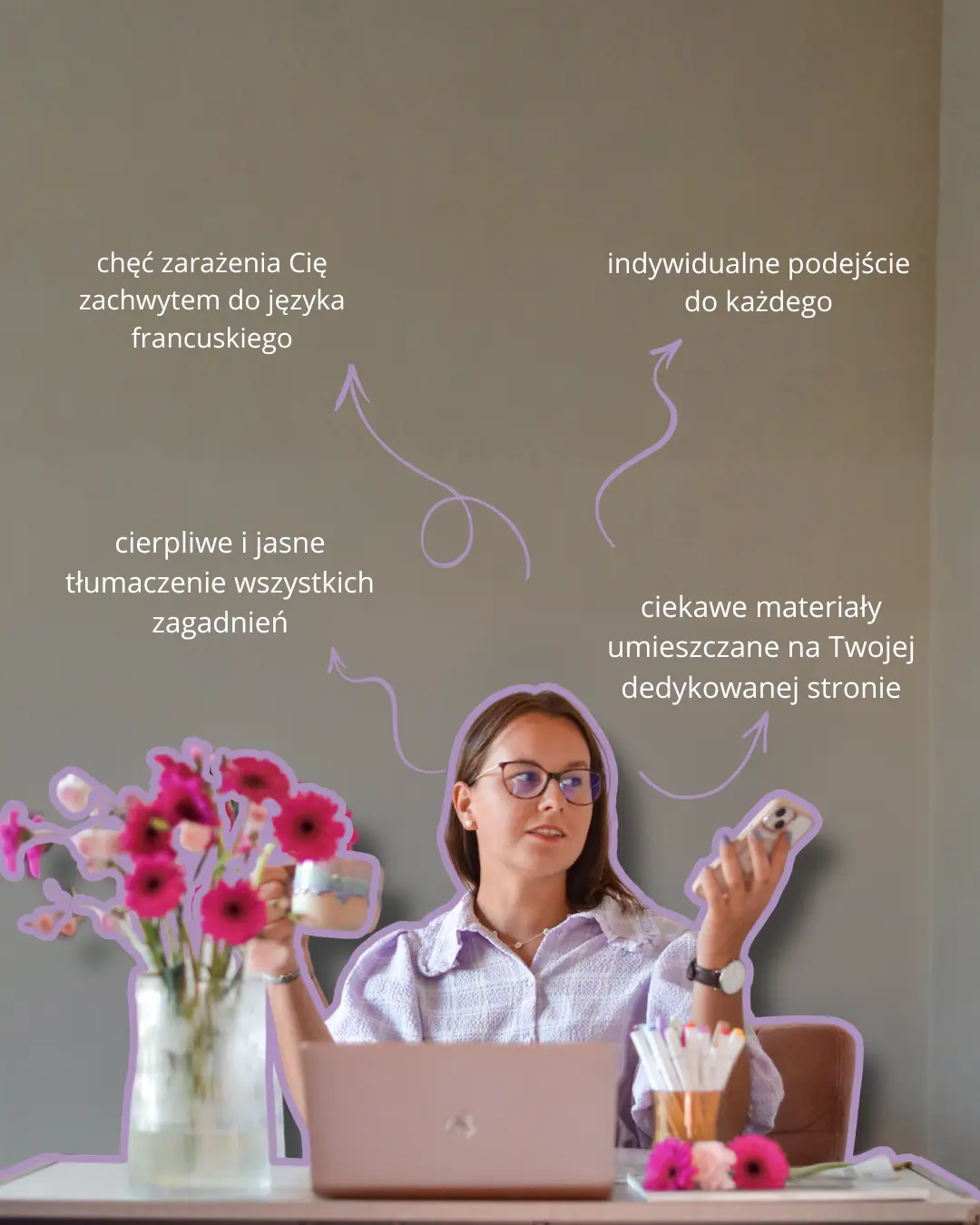- 60 minutowe spotkanie, podczas którego jestem skupiona w 100% na Tobie i Twoim francuskim
